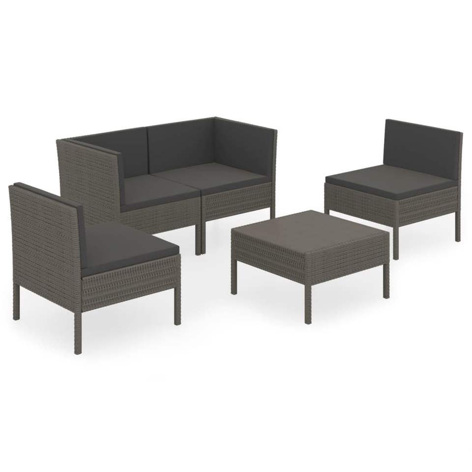 Conjunto de Muebles de Jardín de Ratán PE Gris con Acero con Recubrimiento en Polvo y Poliéster, Colección de Muebles Duraderos para Exteriores