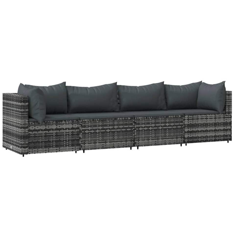 Conjunto de Muebles de Jardín de Ratán PE Gris con Acero con Recubrimiento en Polvo y Poliéster
