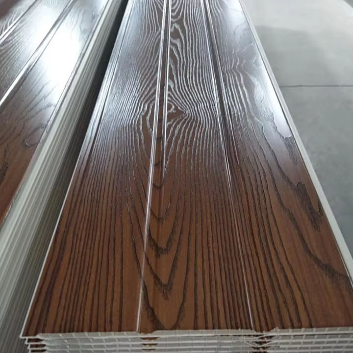 Revestimiento laminado de madera de PVC gris Paneles de techo de plástico corrugado para baño Ignífugo con techos perforados para apartamentos