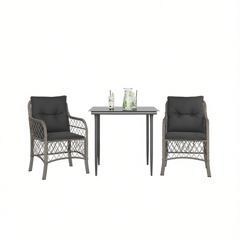Conjunto de Bistro de Ratán Sintético Gris con Cojines, 2 Plazas, Muebles de Jardín para Exteriores, Diseño Contemporáneo