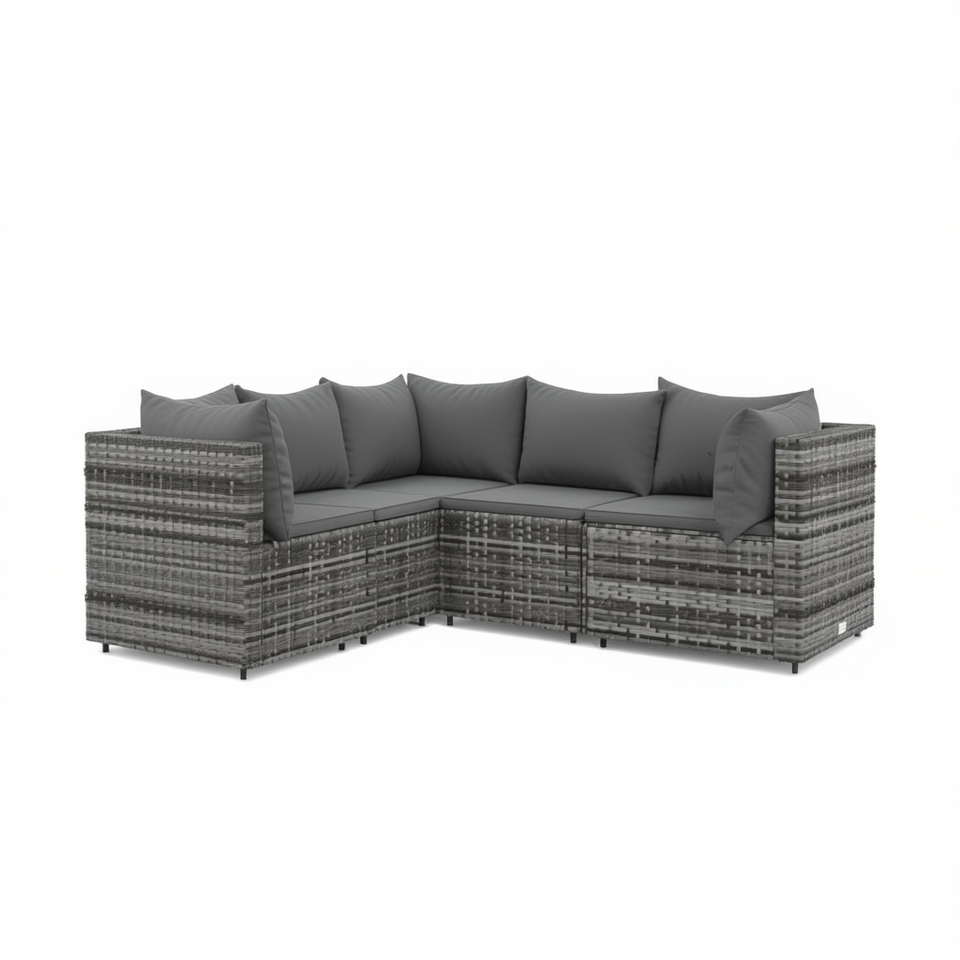 Conjunto de Sofá Esquinero para Patio de Poliratán Gris con Cojines, Muebles de Jardín para Exteriores, Diseño Contemporáneo, Resistente al Agua y a los Rayos UV