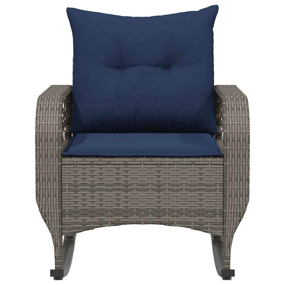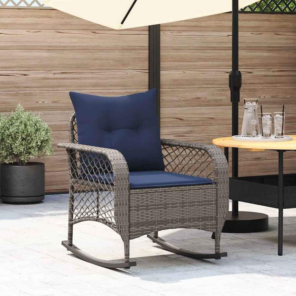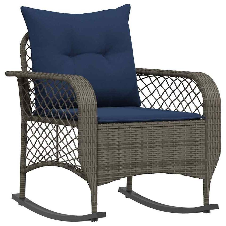 Silla mecedora de patio de ratán sintético gris con cojines, elegante silla de jardín
