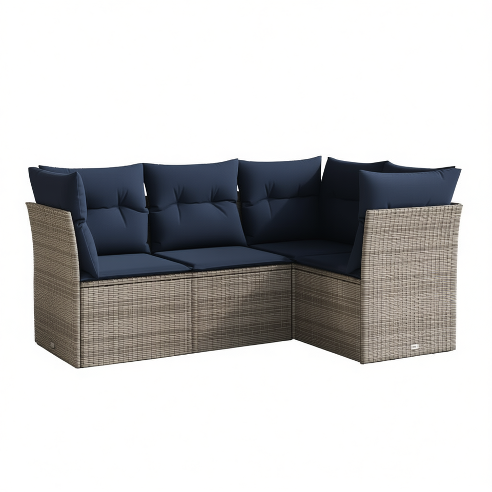 Conjunto de Sofás de Patio de Ratán Sintético Gris con Cojines, Muebles de Jardín para Exteriores, Diseño Contemporáneo Impermeable