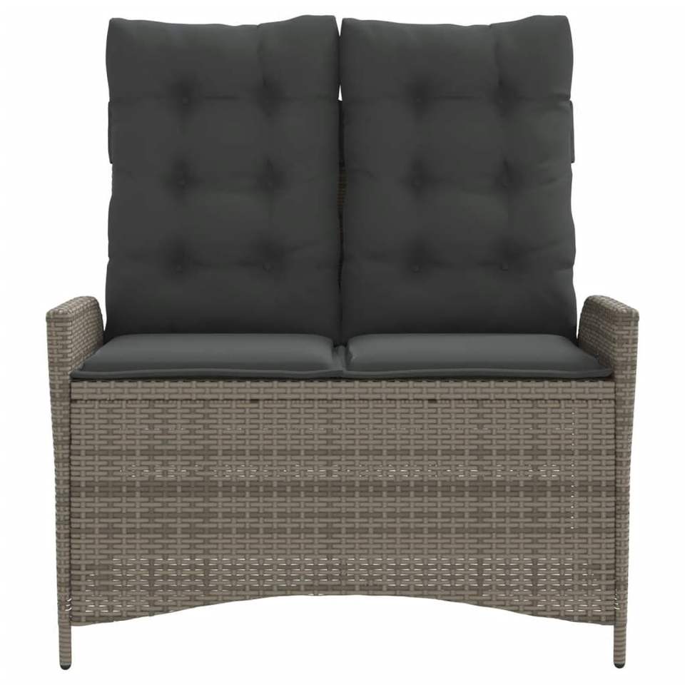 Banco de patio reclinable de ratán polivinílico gris con cojines