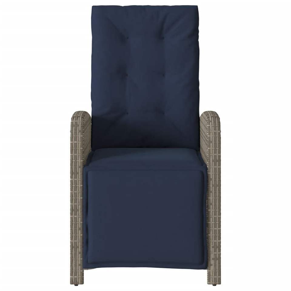 Silla de patio reclinable gris de ratán polivinílico con reposapiés