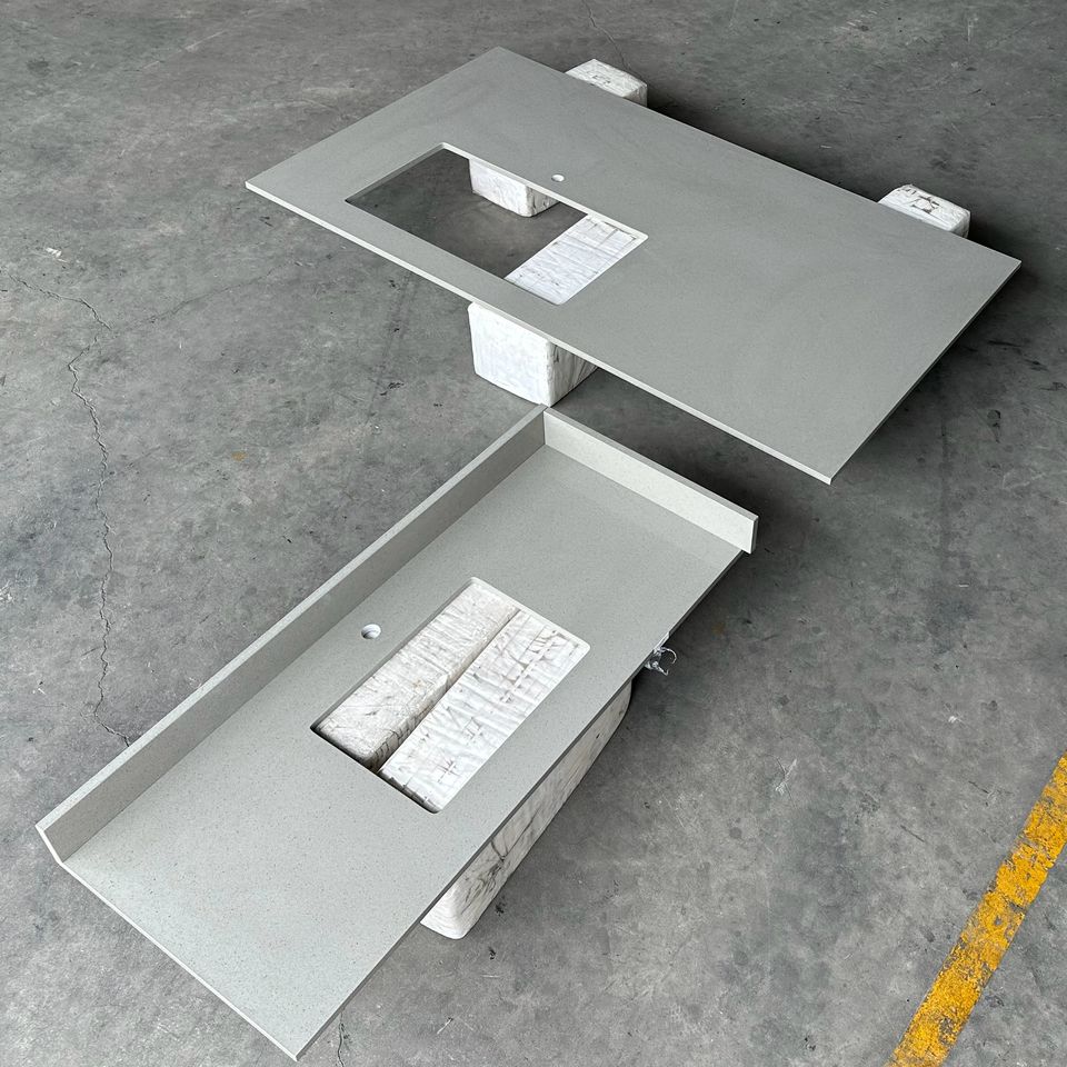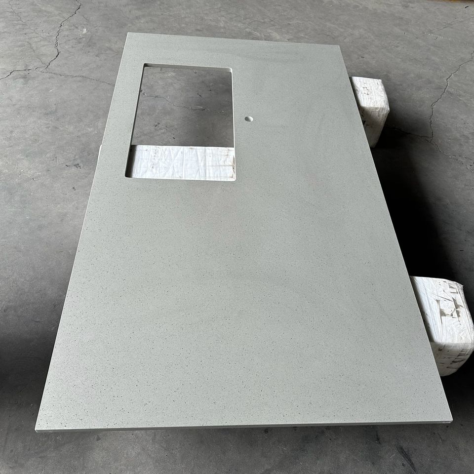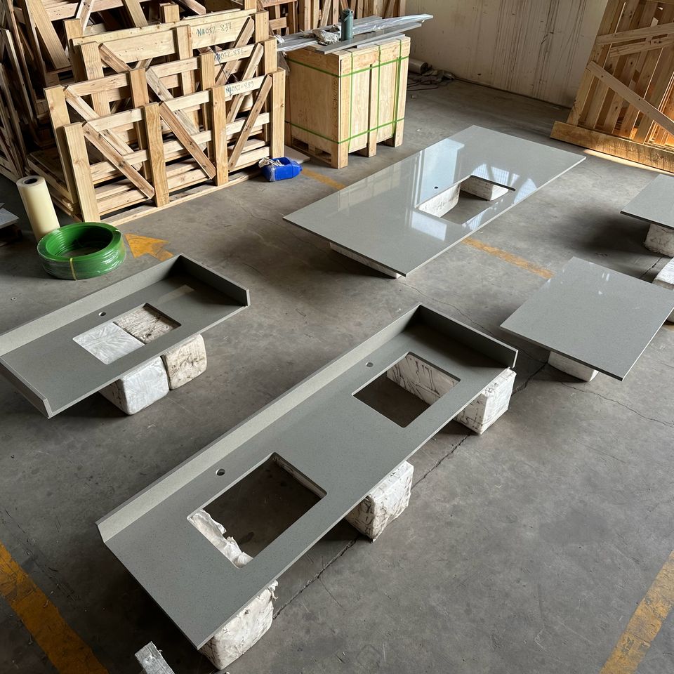 Encimeras de Cocina de Cuarzo Gris Personalizadas, Encimeras de Piedra Artificial para Baño