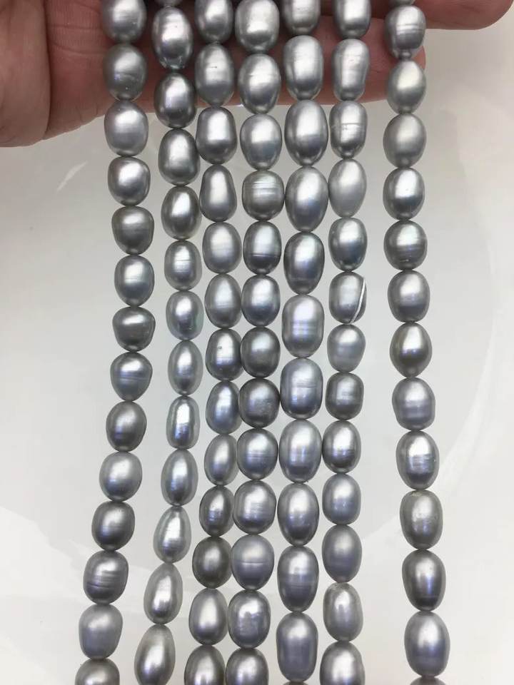 Perlas de Agua Dulce Grises de 7-10 mm Aprox. en Hilo Suelto para Fabricación de Joyería, Venta al Por Mayor, Superficie Lisa