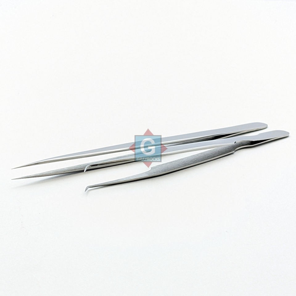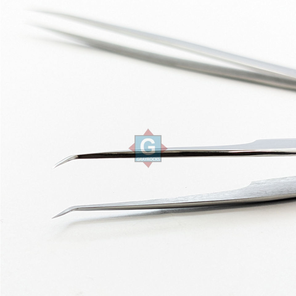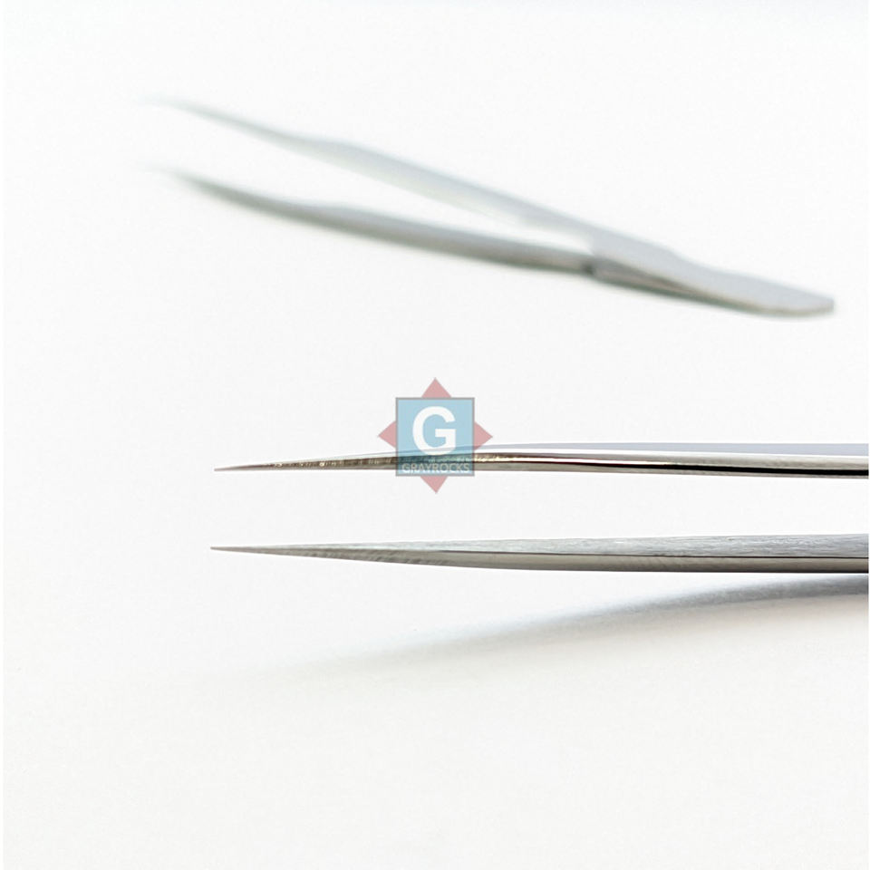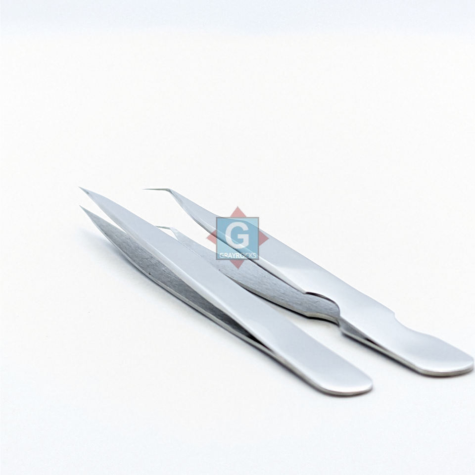 Pinzas para Extensión de Pestañas Hechas a Mano de Alta Calidad, Antiestáticas, con Punta Curva de Acero Inoxidable y Punta Recta, en Color Gris