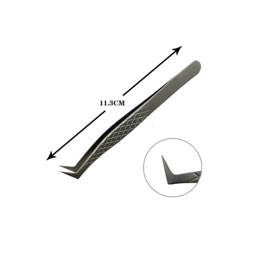 Pinzas para Pestañas de Acero Inoxidable de Alta Calidad Gray Rocks, Juego de Pinzas con Puntas de Fibra Puntiagudas de Precisión Definitiva para Extensión de Pestañas Postizas