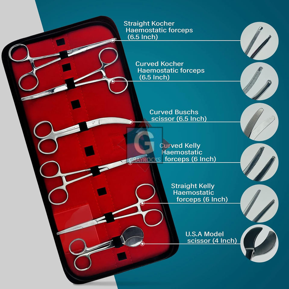 Grey Rocks Veterinary Umbilical Cord Scissor Kit Manual Reutilizable Acero inoxidable de alta calidad Autoclavable Durable-7 piezas