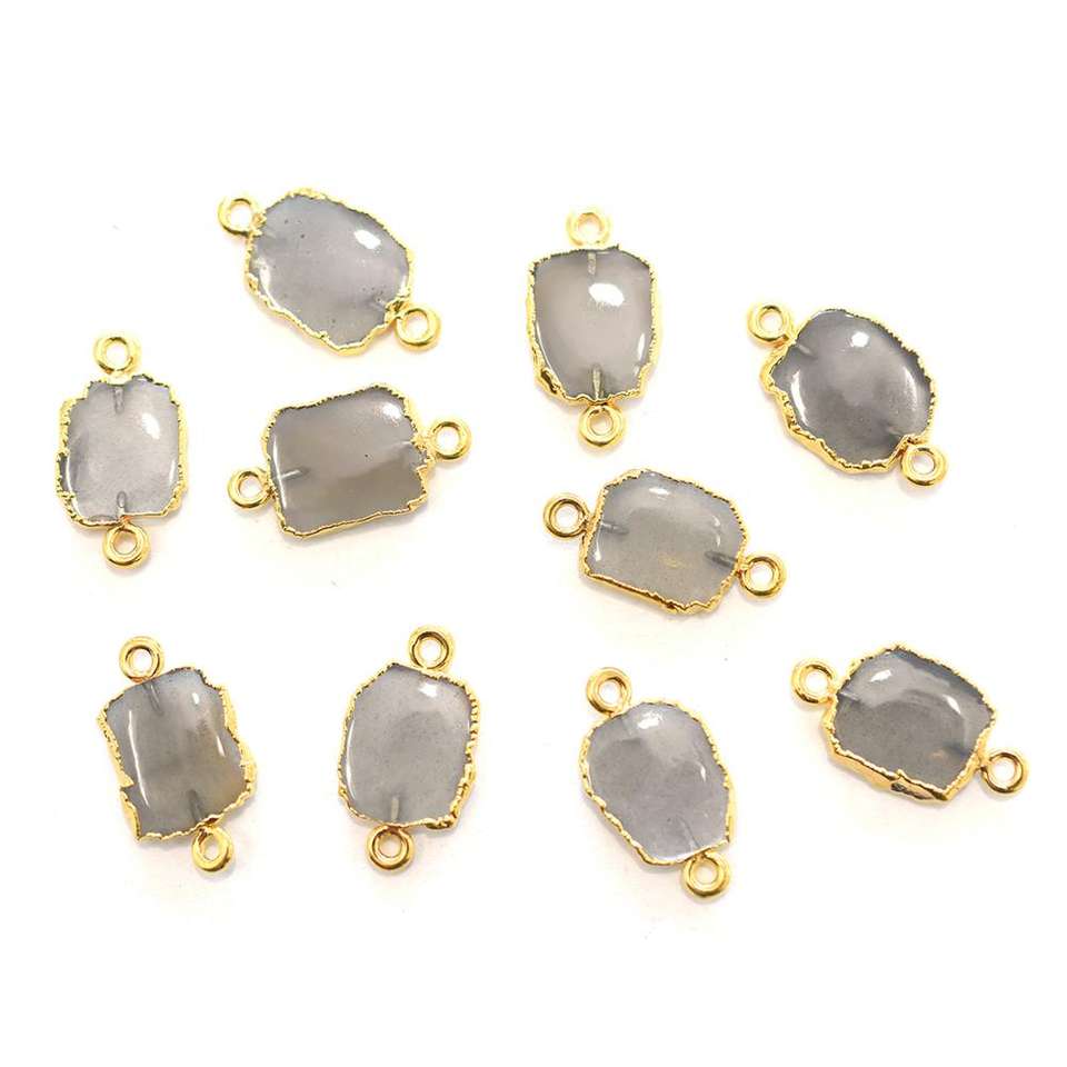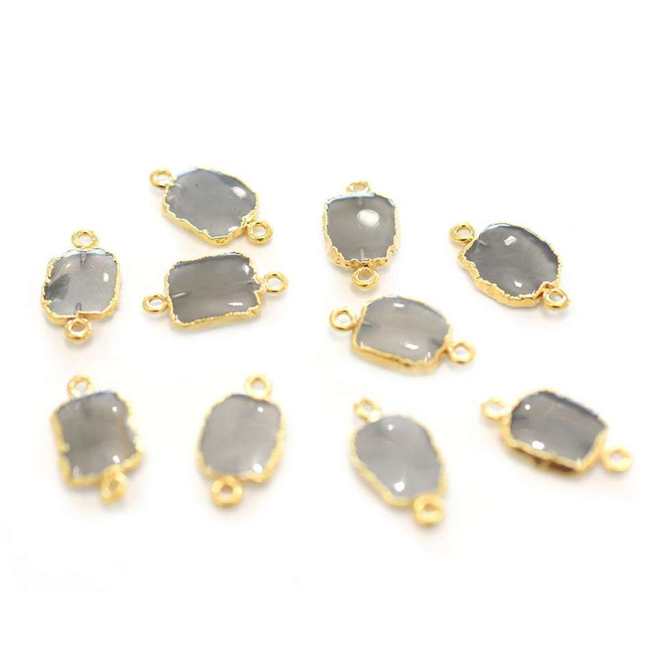 Piedra Lunar Gris de 15 a 17 mm con Conector Rectangular Chapado en Oro para la Fabricación de Joyas