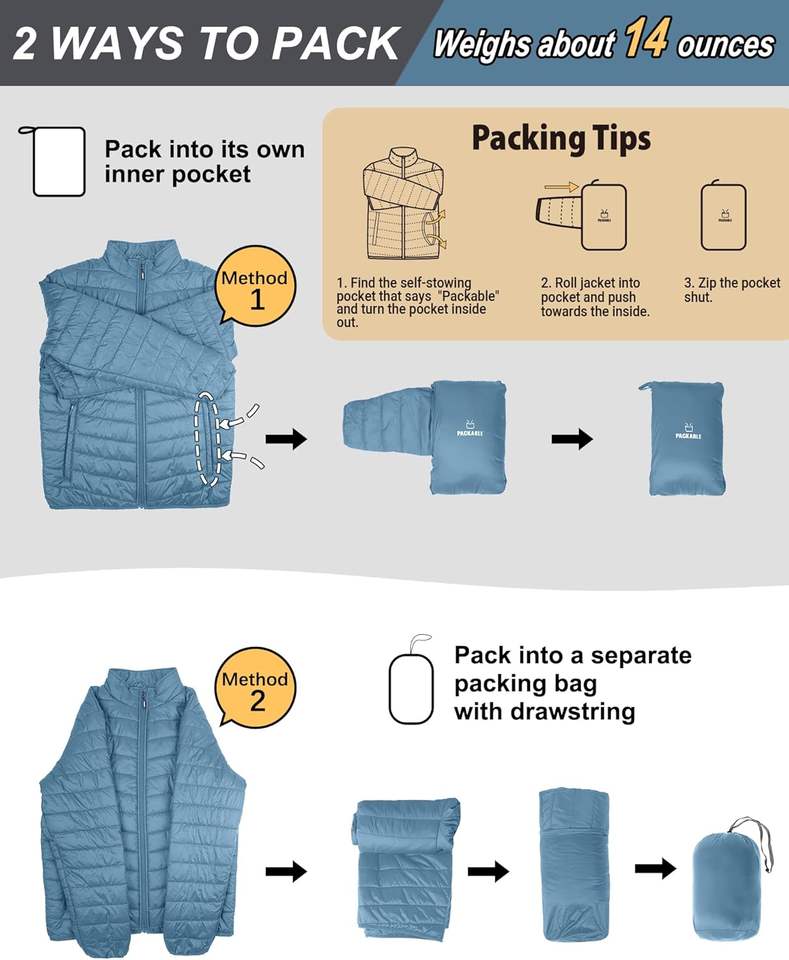 Fabric:Men Warm Water Repellent White Goose Down Puffer Jacket