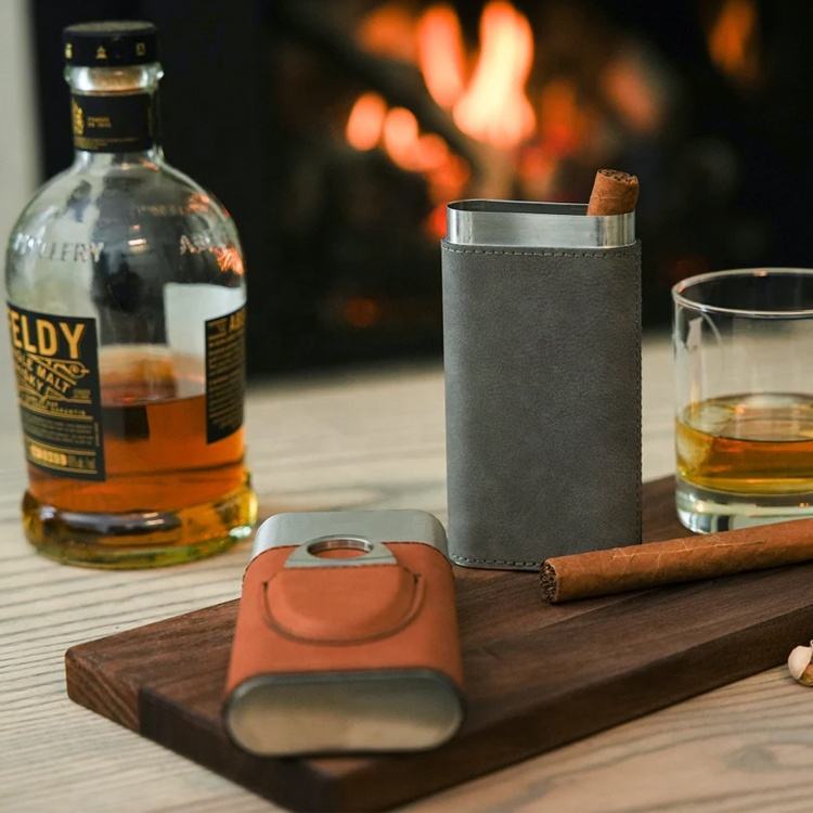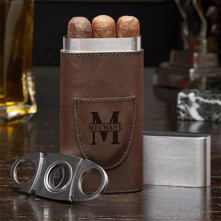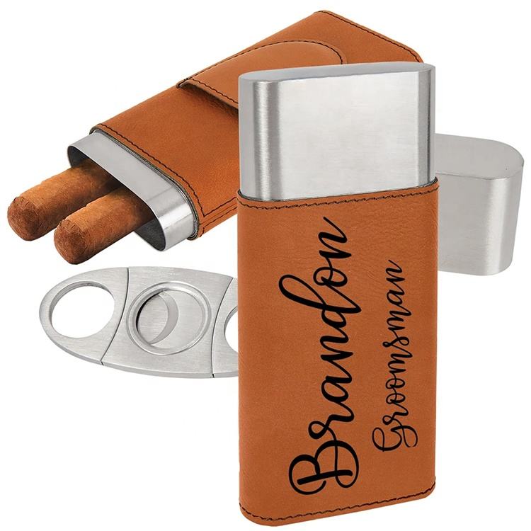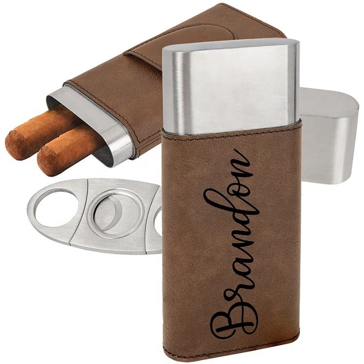 Estuche para Cigarros de Cuero Sintético Grabable con Láser, Humidor con Logotipo Personalizado, Estuche para Cigarros de Acero Inoxidable Recubierto de Cuero PU