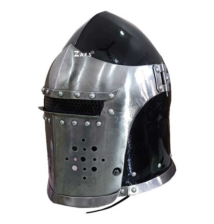 Casco Medieval Barbuta de Acero Dulce de Gran Caballero Templario, Estilo Antiguo Pulido, Coleccionable de Metal, Decoración para el Hogar SCA