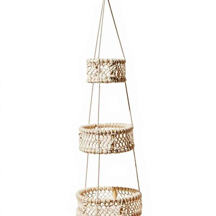 Cesta de Almacenamiento Multifuncional de Ratán Tejido a Mano de Tres Niveles, de Gran Calidad, para Hogar o Restaurante, Ecológica y Montable en la Pared