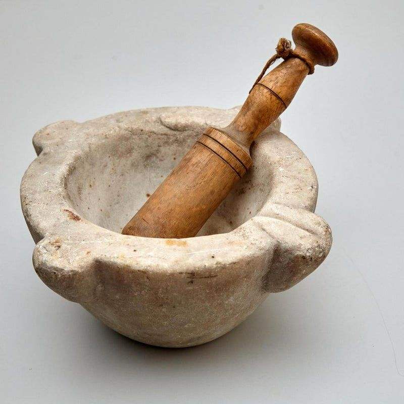 Mortero y Maja de Mármol Clásicos de Gran Calidad a un Precio Razonable con Acabado Pulido, Perfectos para Crear Condimentos Frescos