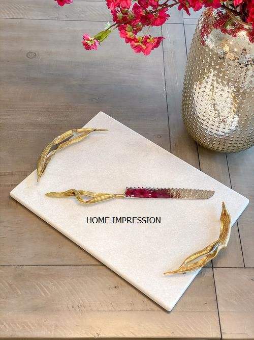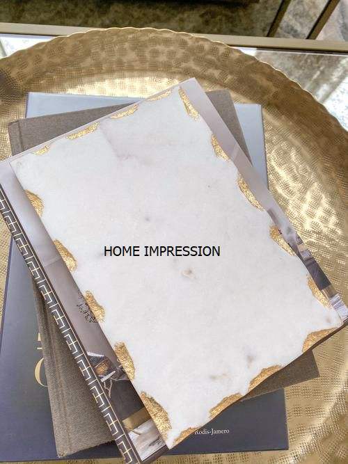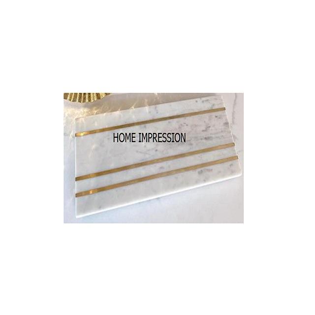 Bandeja de mármol decorativa con incrustaciones de latón de la mejor calidad, vajilla de diseño antiguo, bandeja para servir para el hogar, accesorio de Hotel a la venta