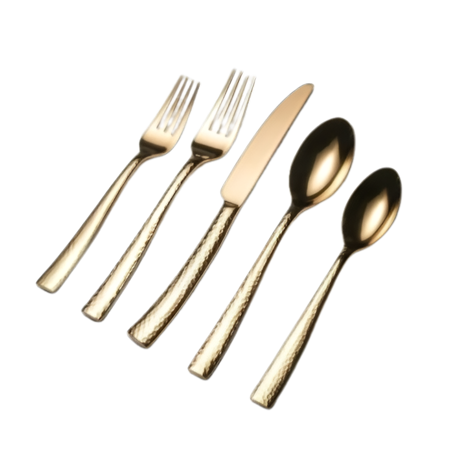 Juego de cubiertos de forma personalizada de la mejor calidad Juego de tenedor de cuchillo de cuchara con acabado dorado para uso en el hogar del hotel al mejor precio.