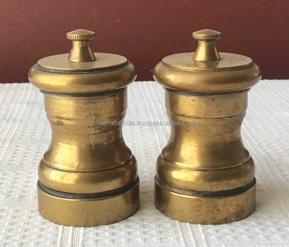 Juego de Salero y pimentero redondo de la mejor calidad Juego de sal y pimienta de cocina de metal marrón más vendido en la India para una cena con estilo