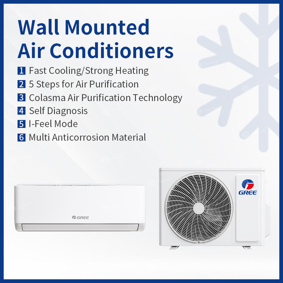 Aires Acondicionados Split Inteligentes Gree R410A de 12000 BTU y 24000 BTU, Inverter de Pared con Calefacción y Refrigeración para Hogar/Oficina
