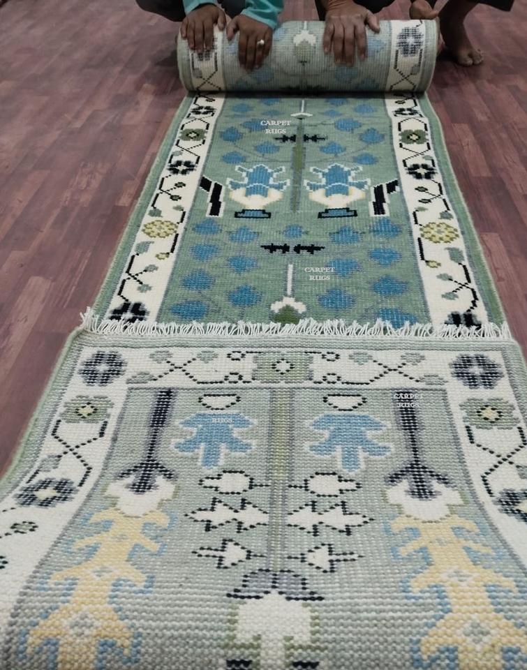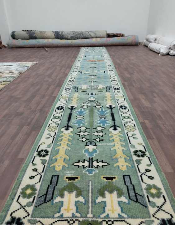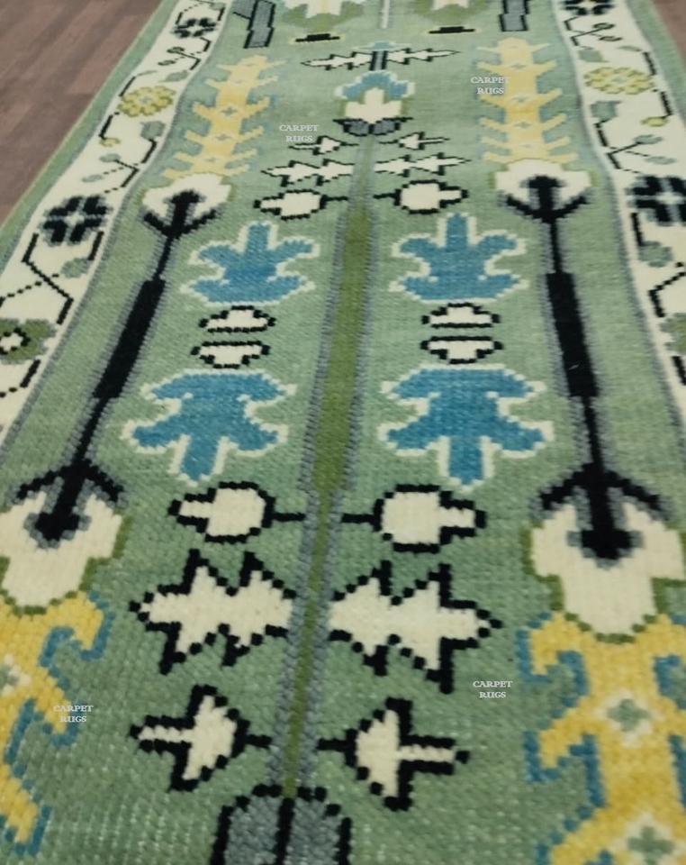 Alfombra de lana verde abstracta tribal, tejida a mano, larga, para pasillo, estilo bohemio escandinavo, apta para mascotas, antideslizante