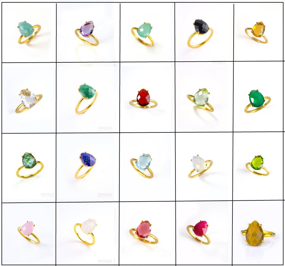 Nombre del producto:Anillo Vermeil de Oro Juego de Prong Forma de lágrima Amatista Verde