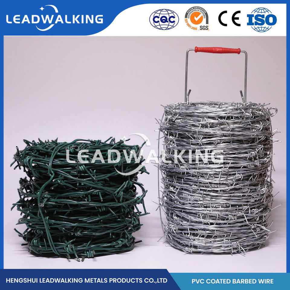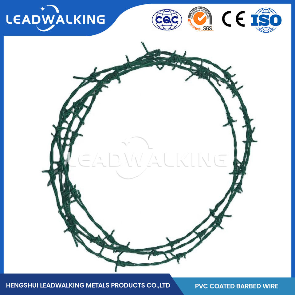 Bobina de alambre de púas recubierta de PVC anticorrosión y antienvejecimiento de alambre de hierro verde Leadwalking para protección de aislamiento de carreteras