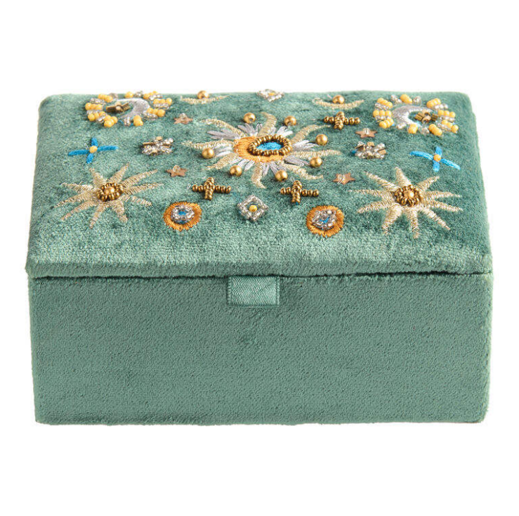 Juego de Collar y Aretes Bordados con Cuentas Verdes, Caja con Espejo, Logotipo Personalizado, Madera Maciza Ecológica, Anillo, Embalaje para Joyas