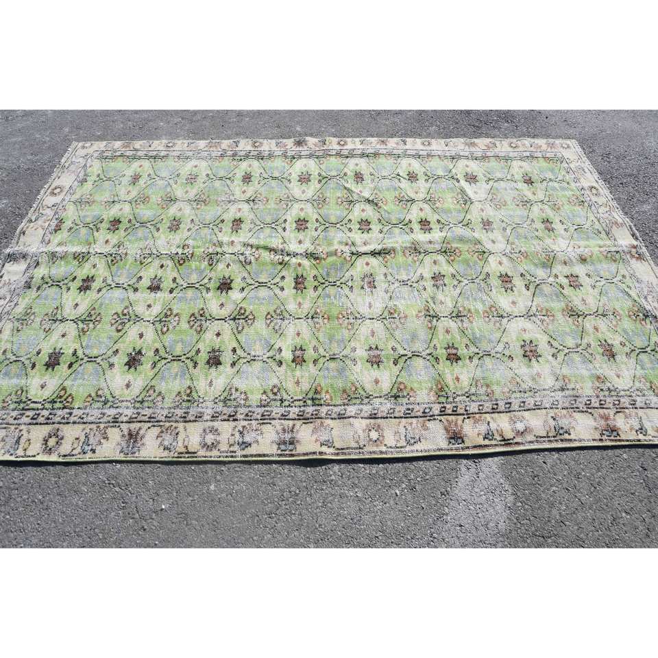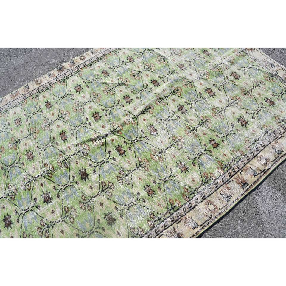 Alfombra de lana Floral tradicional verde Beige 5,6X8,6 pies Rectángulo Patchwork Patrón Respaldo de látex Material de piel viscosa Alfombra de habitación