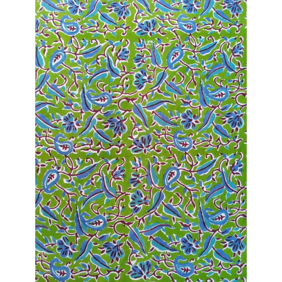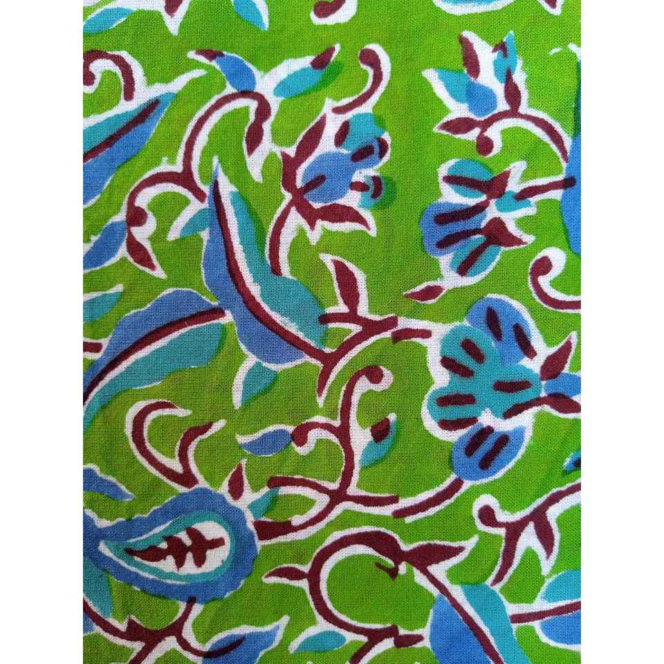 Tela estampada de bloque de mano de algodón puro Floral verde y azul, bolsas de tapicería para decoración del hogar, hilo peinado, estilo africano, punto