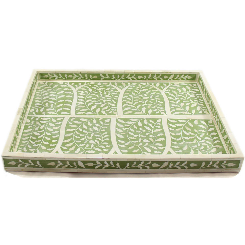 Bandeja Decorativa con Incrustaciones de Hueso Verde para Mesa de Centro o Otomana | Bandeja de Madera Hecha a Mano de Primera Calidad, Decoración para el Hogar, Regalo de Lujo y Elegante