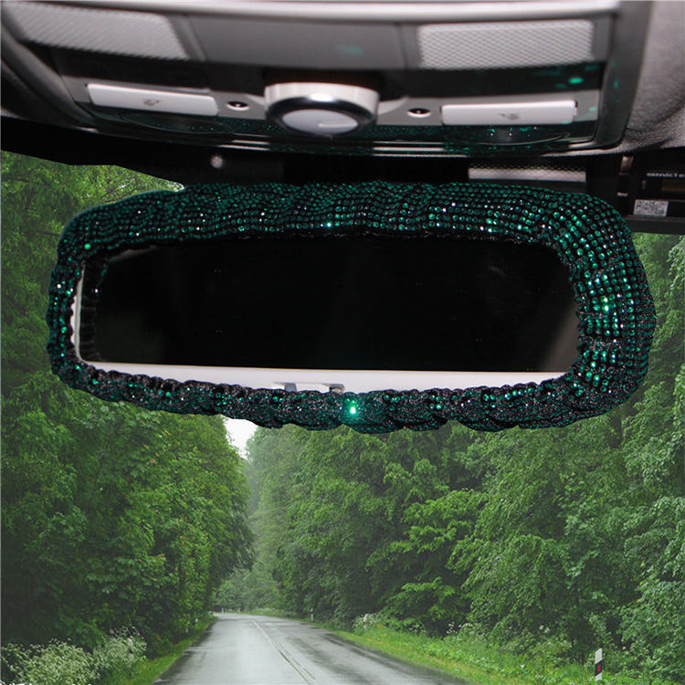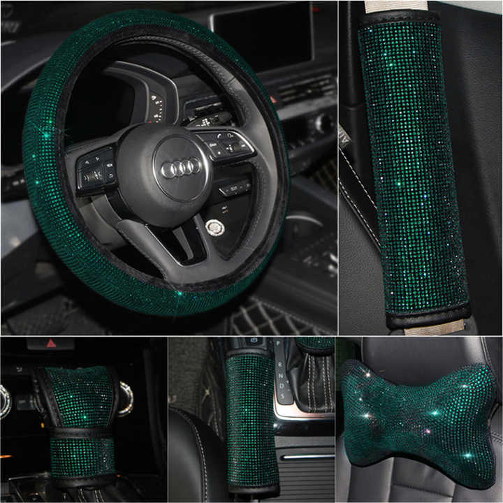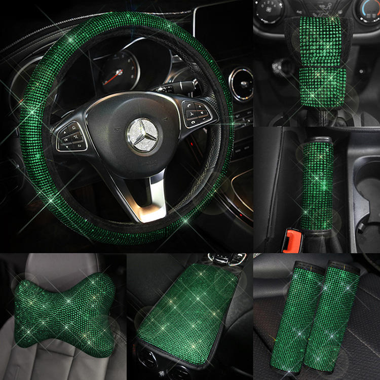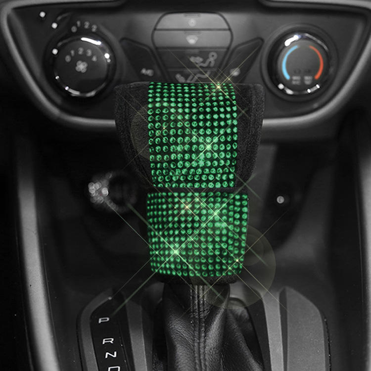 Funda de freno de mano con diamantes de imitación para coche, cubierta de volante integrada, color verde, Esmeralda