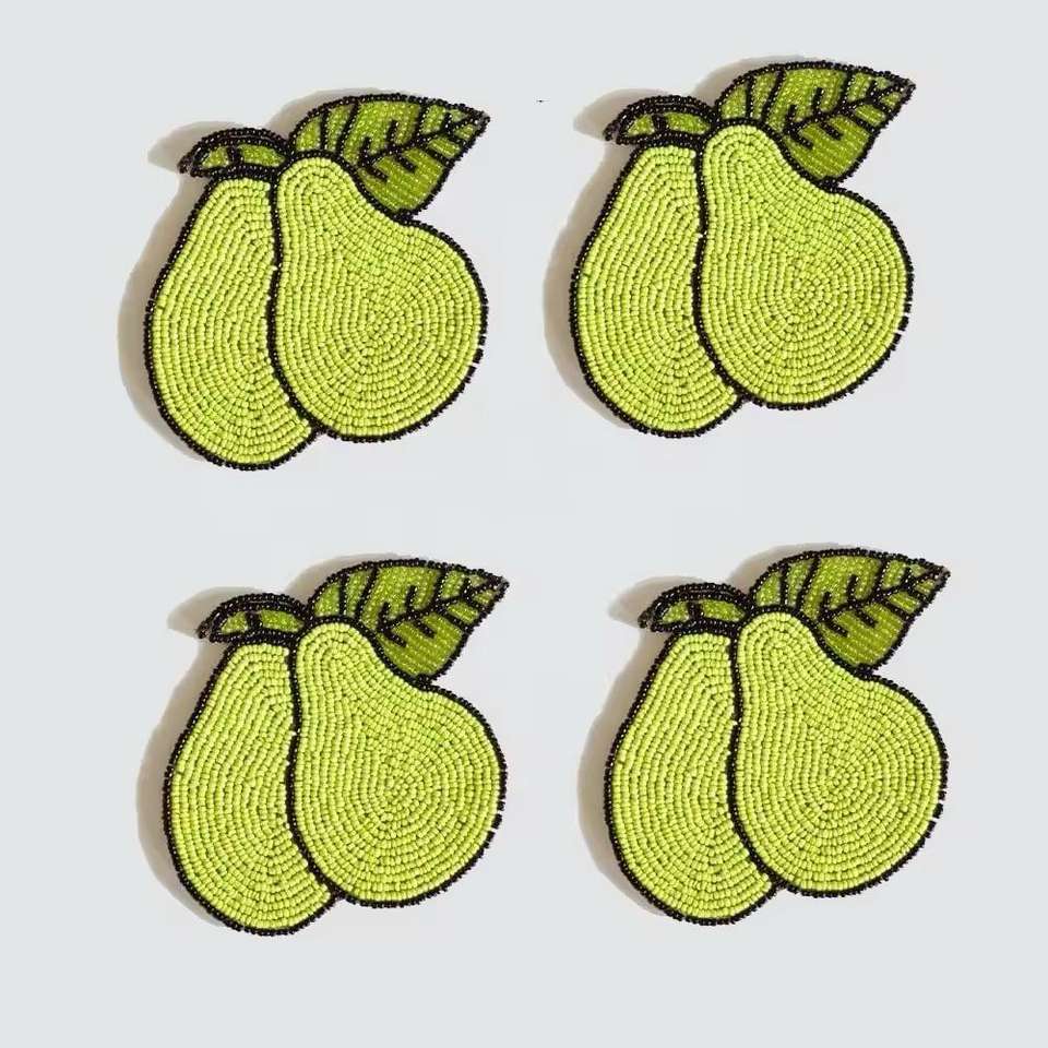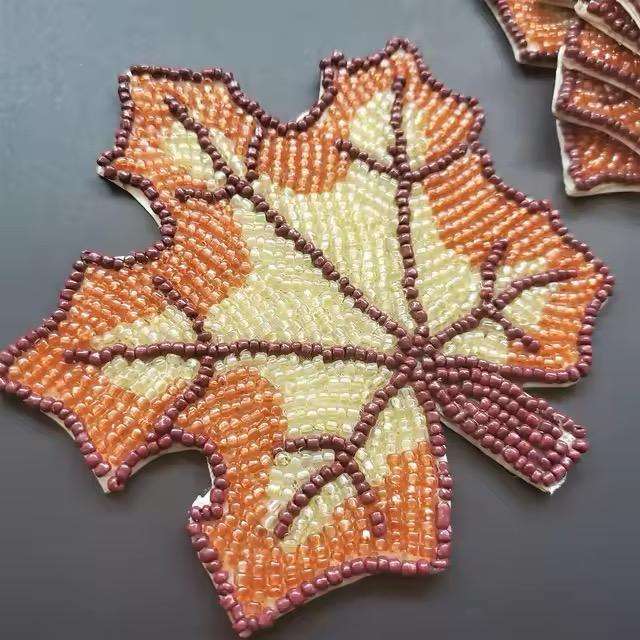 Forma de diseño de hoja de roble de Color verde con cuentas con contorno marrón posavasos hecho a mano y almohadillas para decoración de mesa boda