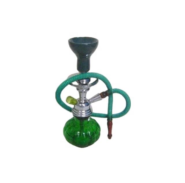 Cachimba de Vidrio con Base de Color Verde con Piezas de Metal y Cerámica, Cachimba de Vidrio y Metal para Uso y Decoración