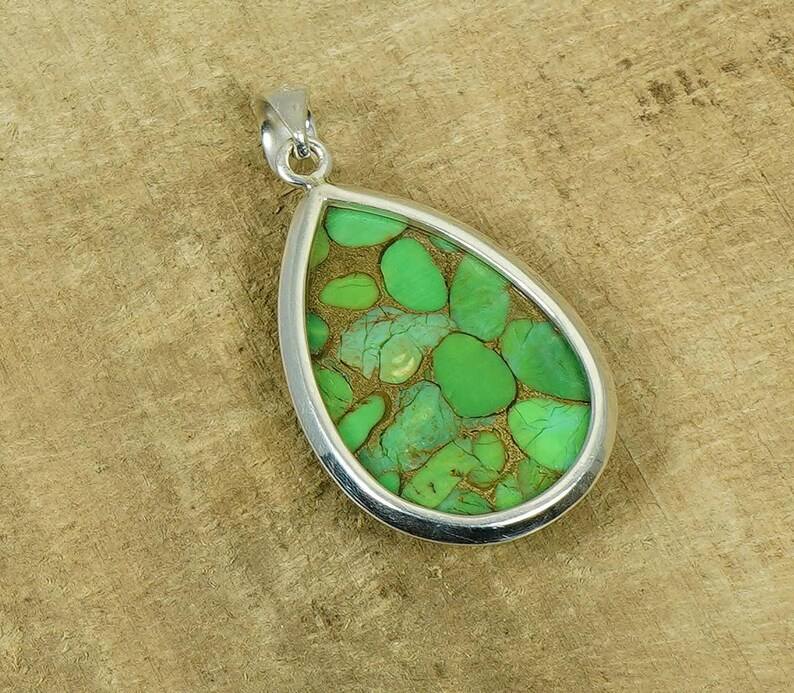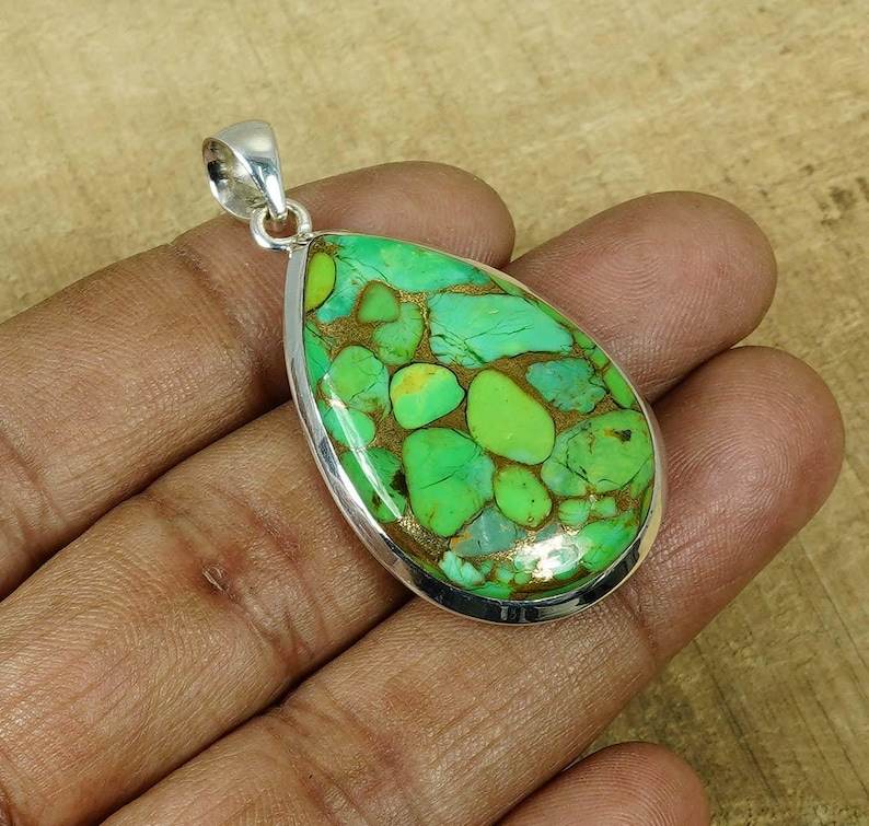 Colgante de Turquesa Verde Cobre en Forma de Pera, Plata de Ley, Joyería Hecha a Mano, Elegante Regalo para Mujer