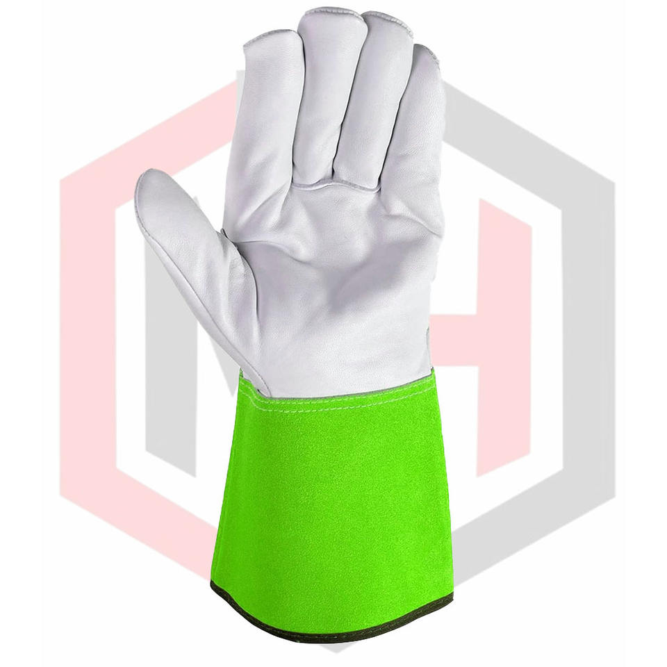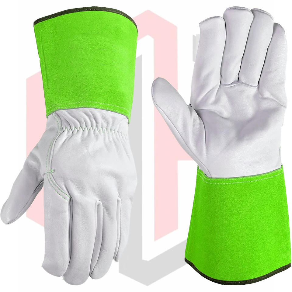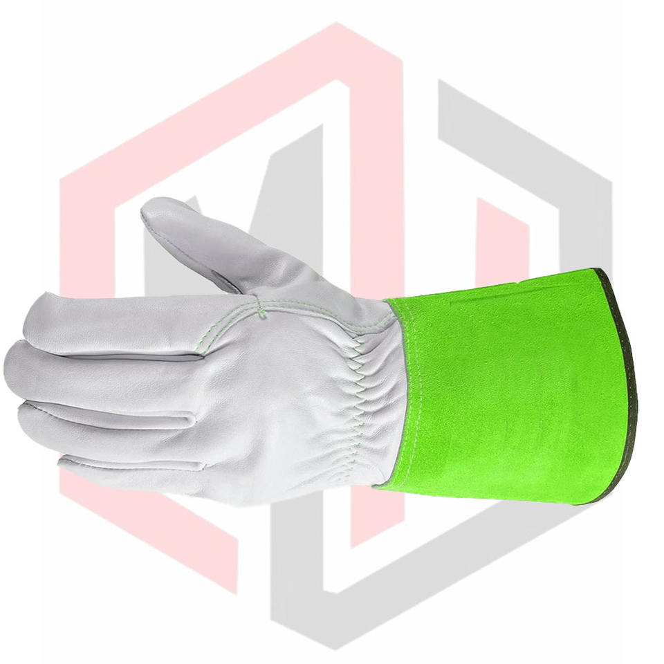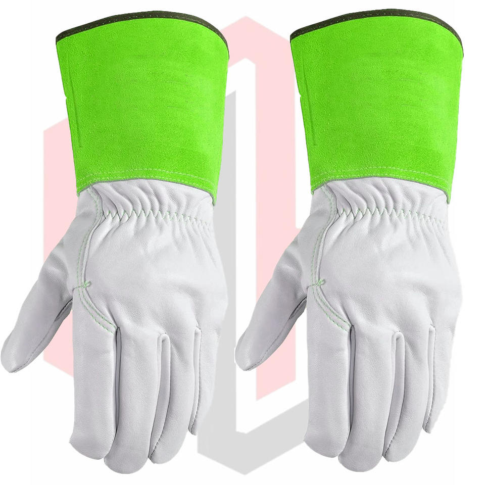 Guantes verdes de piel de cabra para Protección Laboral, guantes de soldadura Mig Tig de cuero para trabajo para mujer