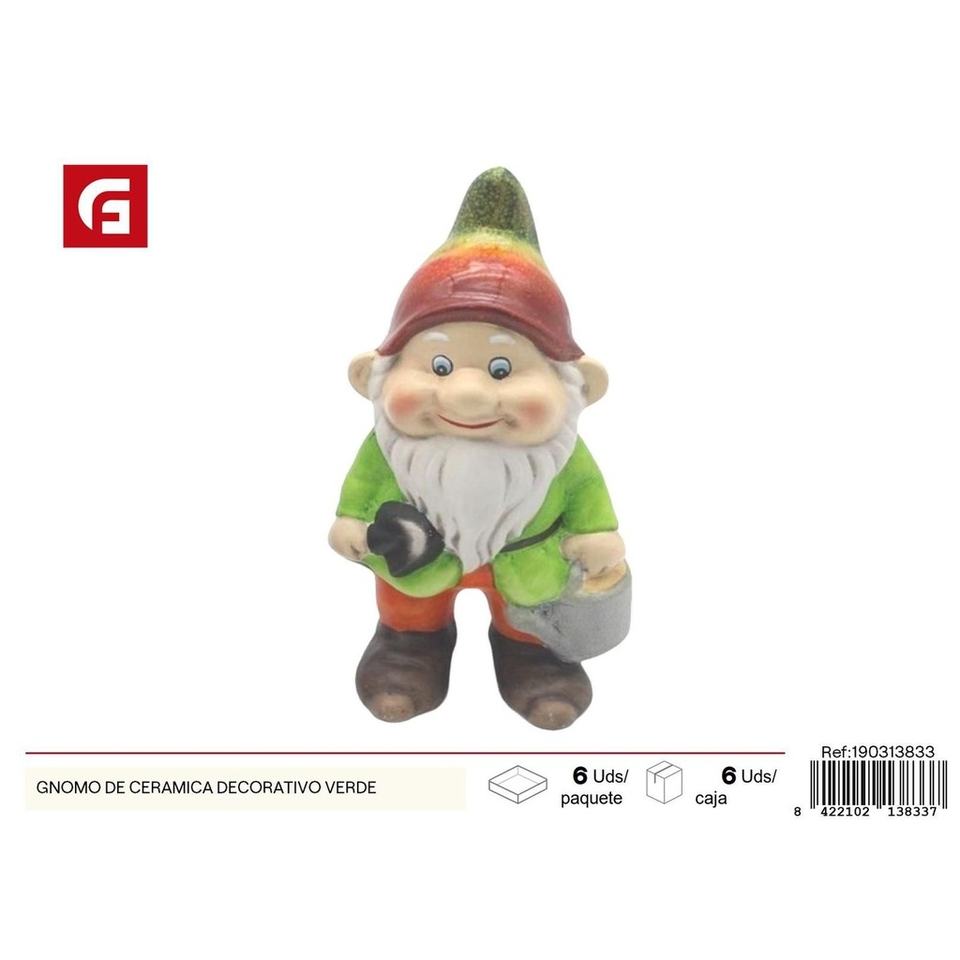 Gnomo de cerámica decorativo verde-Decoración de jardín