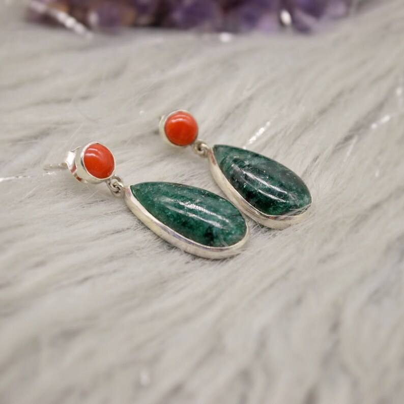 Pendientes colgantes de Coral Esmeralda verde, pendientes de plata de ley 925, joyería de piedra natal de mayo, regalo para ella, joyería hecha a mano
