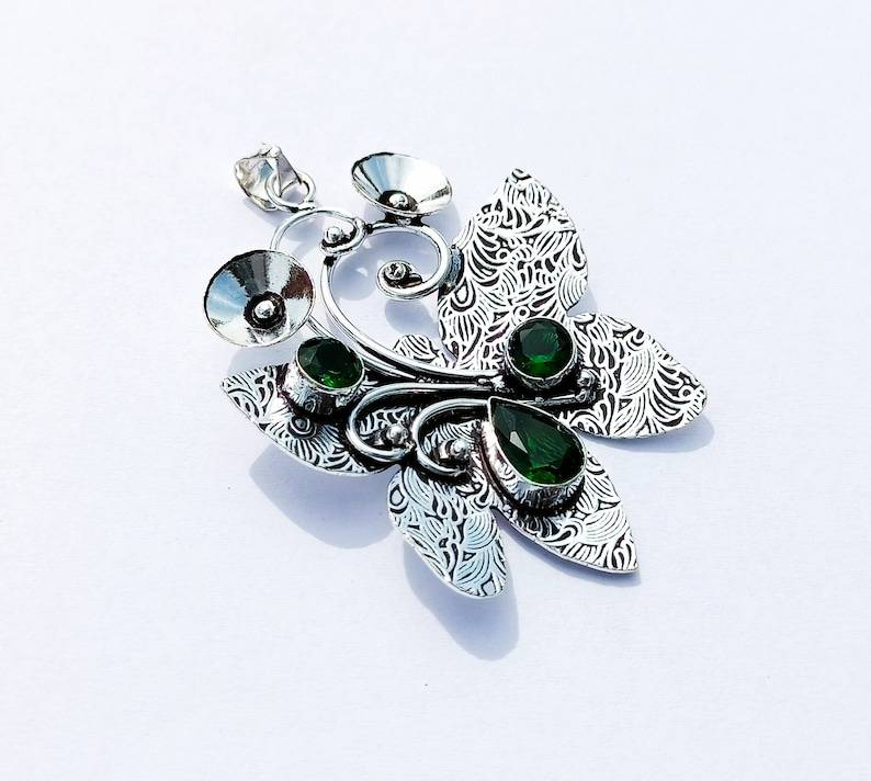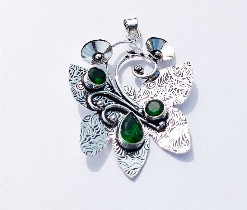 Colgante de cristal verde esmeralda hecho a mano, colgante chapado en plata de ley, joyería, regalo de cumpleaños para mujer