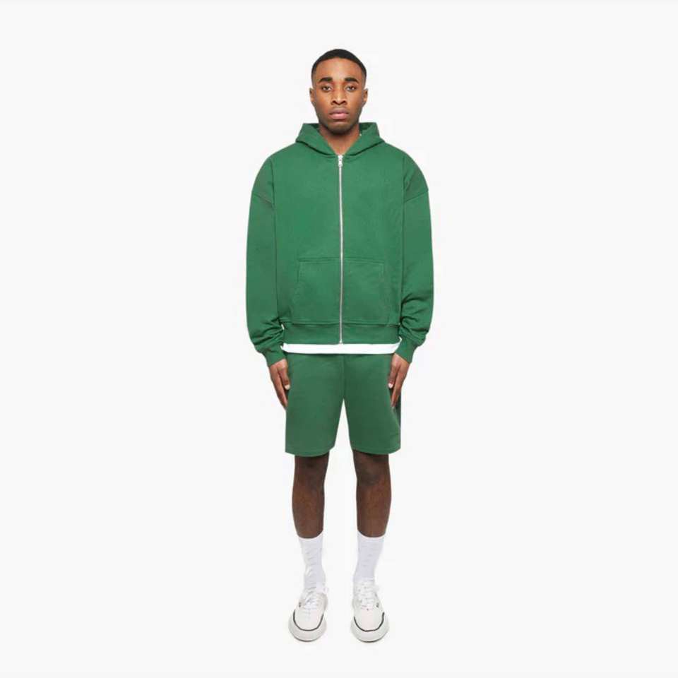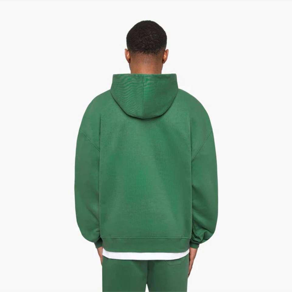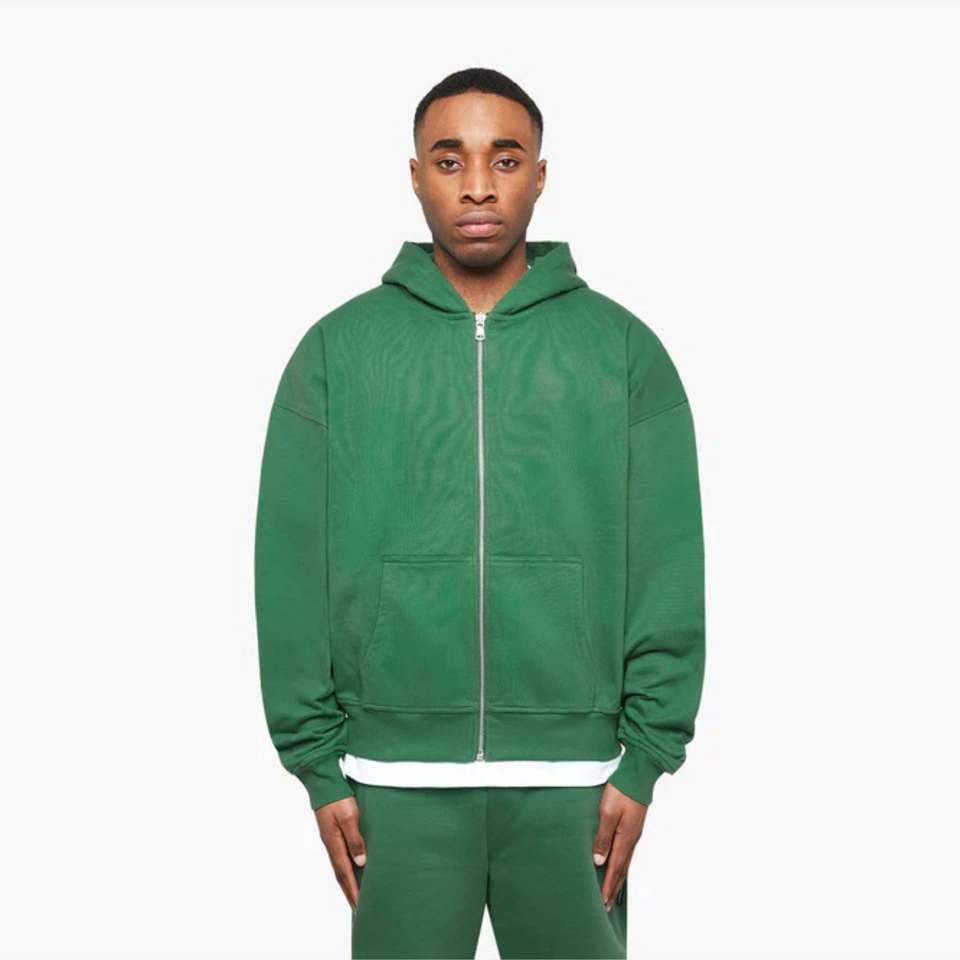 Green Essential Zip Hoodie Ajuste cómodo, construcción duradera y elegante bordado frontal 2D