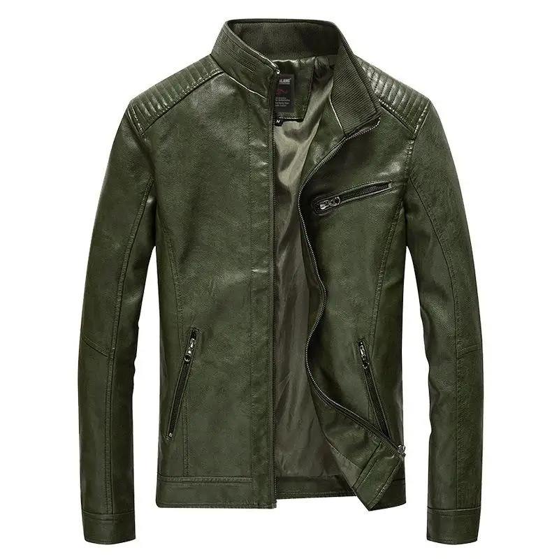 Chaqueta de Cuero Sintético Verde para Hombre, Abrigo de Motociclista Acolchado de Terciopelo Fino, Ropa Exterior Informal, Abrigo Holgado, Chaqueta para Hombre
