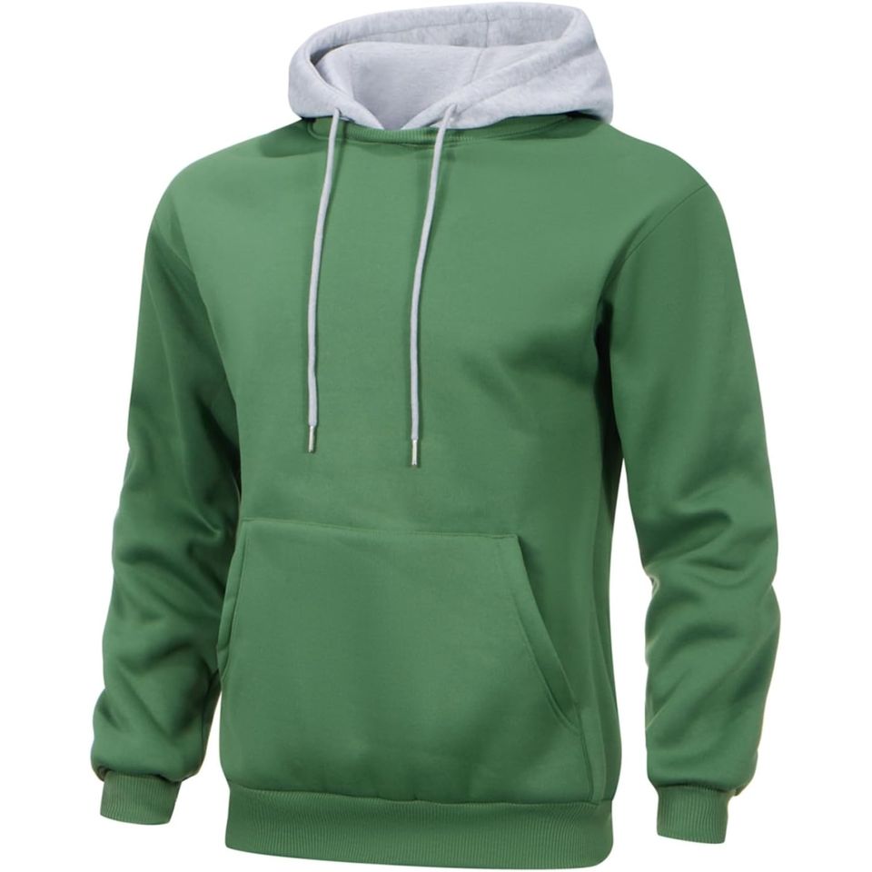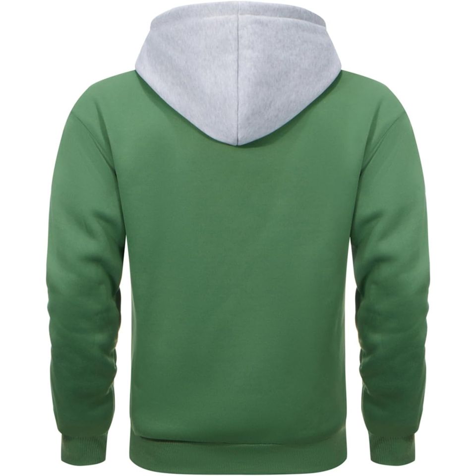Sudadera con Capucha para Hombre, Verde y Gris, de Algodón Transpirable, Estilo Casual, Holgada, Deportiva, con Capucha de Forro Polar, con Cordón Ajustable