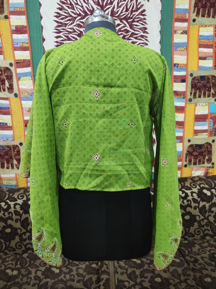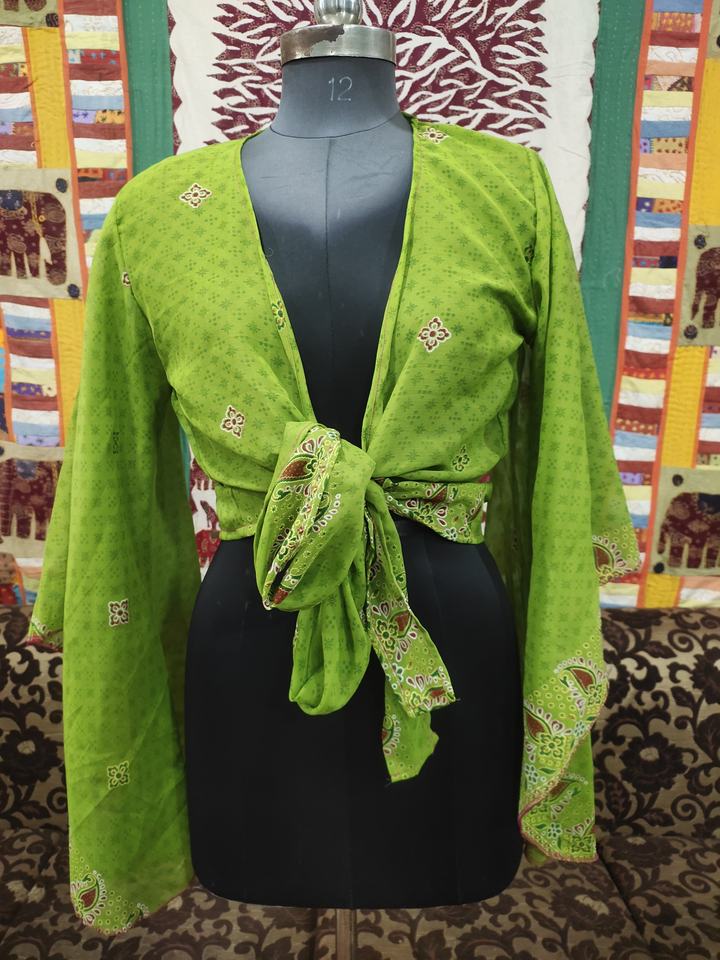 Blusa modesta de seda Vintage India hecha a mano estilo bohemio Hippie Beige abrigo corto mangas de campana verano frente lazo campana modesto Tops