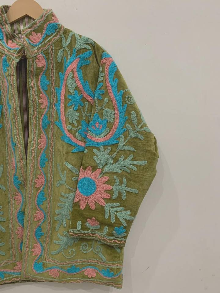 Chaqueta bordada de terciopelo Suzani estilo indio Verde | Regalo de dama de honor unisex | Chaqueta de invierno | Kimono Robe