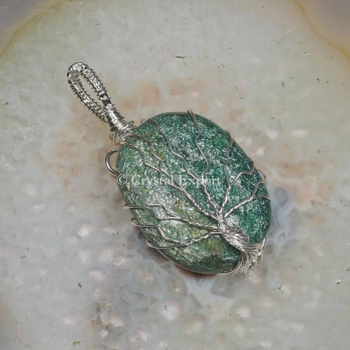 Colgantes de envoltura de alambre de árbol de cristal curativo de jade verde Comprar collar de envoltura de cristal