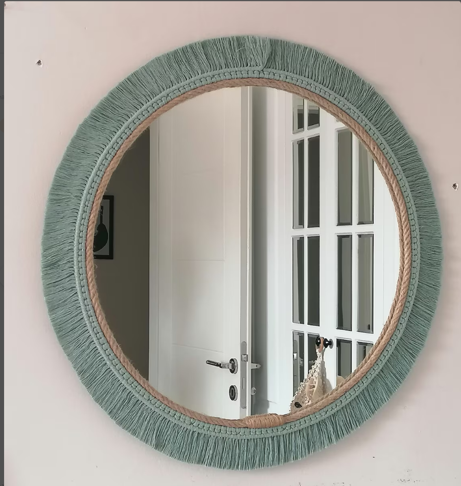 Espejo de yute verde, espejo de pared moderno grande redondo espejo veneciano para decoración del hogar