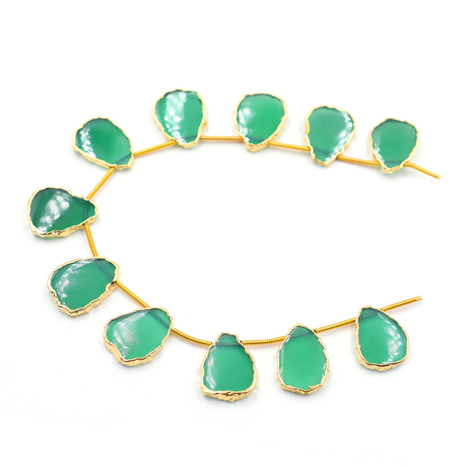 Nombre del Producto:Hilo de 11 cuentas de ónix verde perforadas lateralmente y chapadas en oro