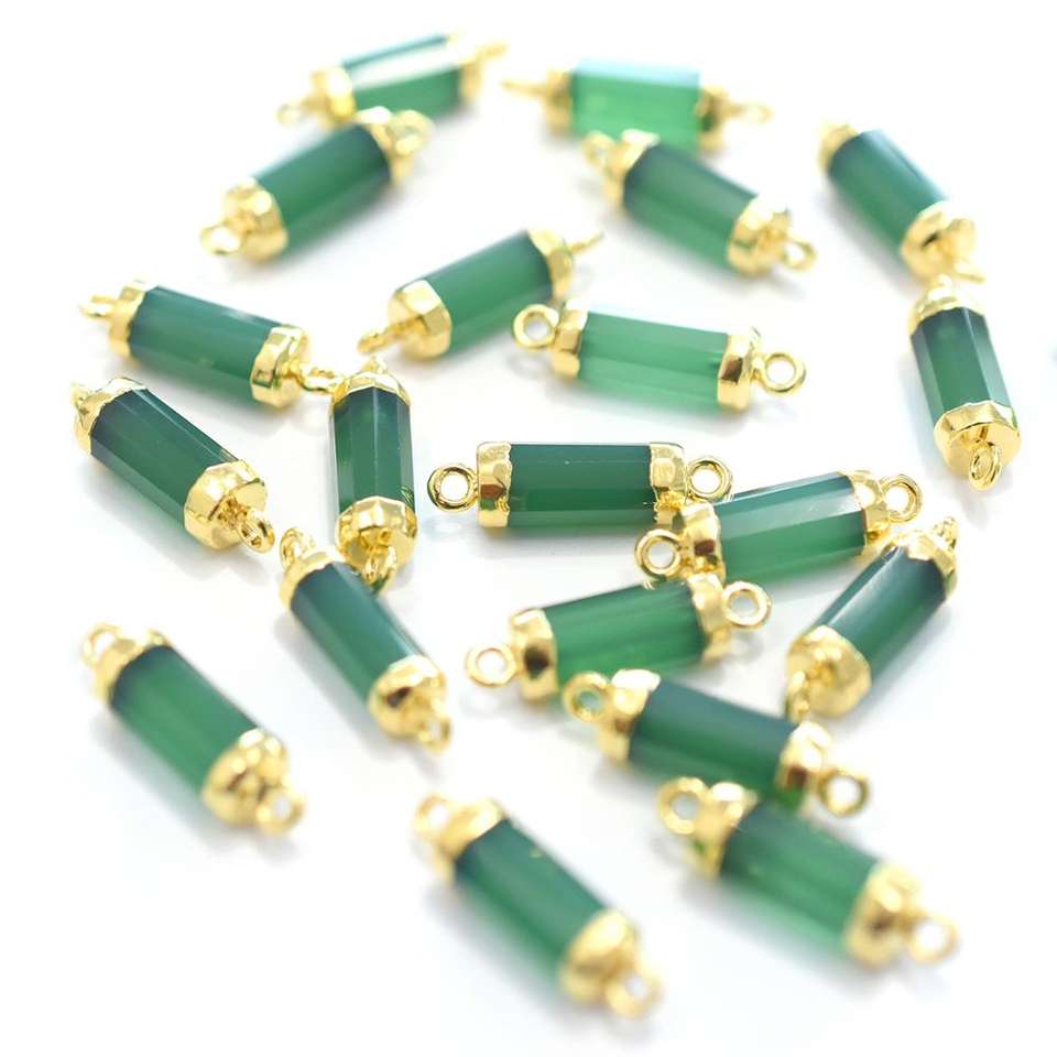 Product Name:Green Onyx 18 To 20 MM With Bail Tube Shape Gold Plated Connector