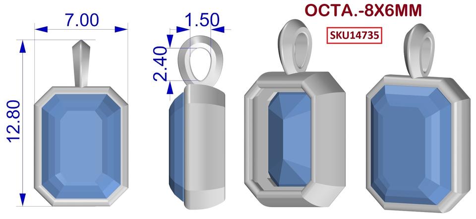 Pendant Length:L- 12 To 14 MM With Bail, W-7 To 8 MM, H- 4 To 5 MM