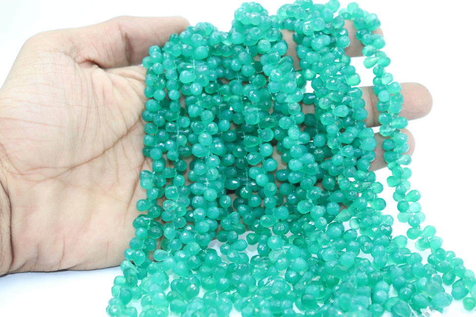 Nombre:Cuentas de forma de gotas facetadas de Onyx verde